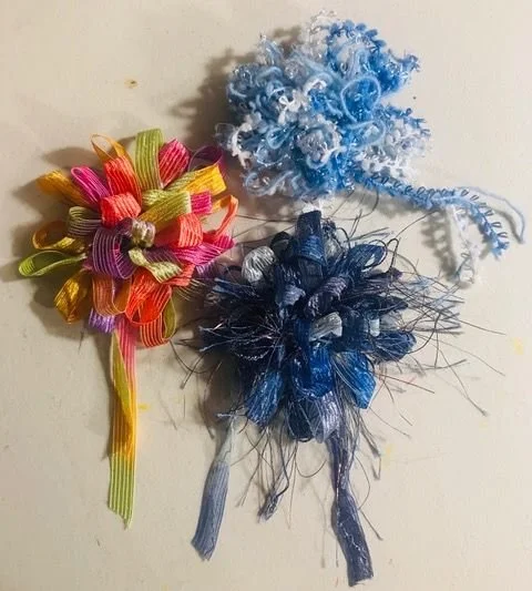 Materials: Bring various yarns in several different colors, fancy, ribbon like, metallic (about 4 to 5 yards each), 5.0 or 5.5mm crochet hooks, needle and threat. Doris will bring an extra stash of novelty yarn ($1.00 each) you can pick from and the pins (free) to complete the project.