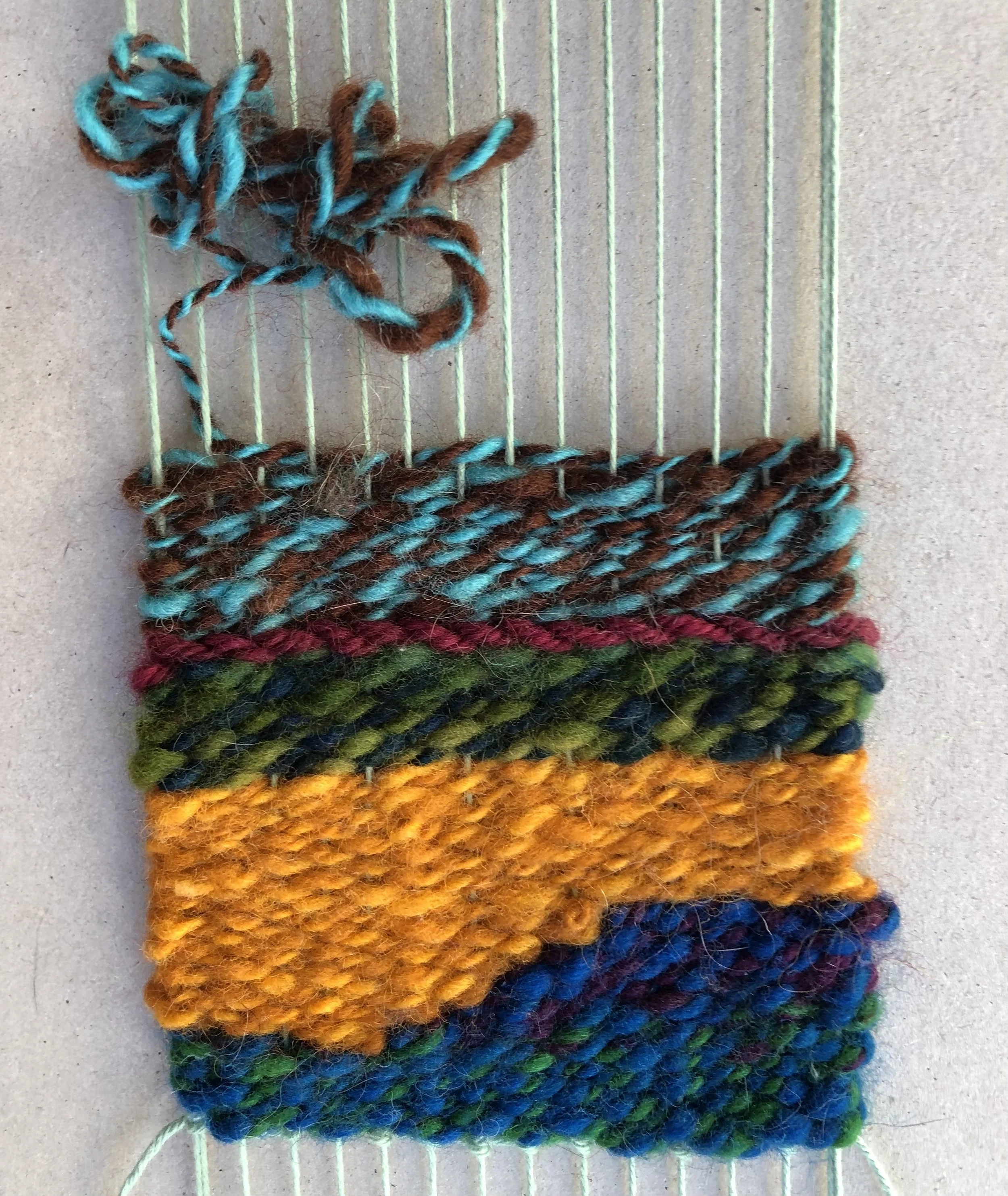 Never woven before? No problem! This class is for the complete novice and will allow to you learn a bit about one type of weaving: tapestry weaving! Wendy Avery will show you how to use a cardboard loom to create a small decorative weaving. This little loom has no device to make a shed, so you will be weaving in and out with a plastic needle. We will warp the loom and learn some basic weaving options, including using half-hitches to fasten the beginning of your weaving, and then play with color while learning some weaving techniques including soutache. You may bring your own small tapestry loom if it is in good repair, (please talk to Wendy ahead of time if you are doing that). Things to bring: small amounts of worsted to heavy worsted yarn from your stash to weave with, scissors, a ruler. Wendy will provide cardboard looms (including an extra for you to take home), shed sticks (popsicles sticks), cardboard looms, and large eye plastic needles. $30 members, $40 nonmembers. Materials fee: $5.00 payable to Wendy at class. Bring a snack and a beverage. Location: upstairs at Oatland, location TBA. If you have difficulty registering please email us at info@fiberguildsav.com. CLICK ON THE DESCRIPTION BELOW THE PHOTO TO REGISTER!